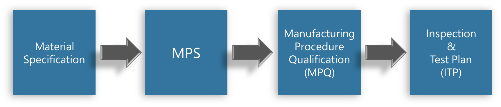 Figure 2: The MPS is derived from the Material Specification and is used for the Manufacturing Procedure Qualification (MPQ) and the Inspection and Test Plan (ITP)